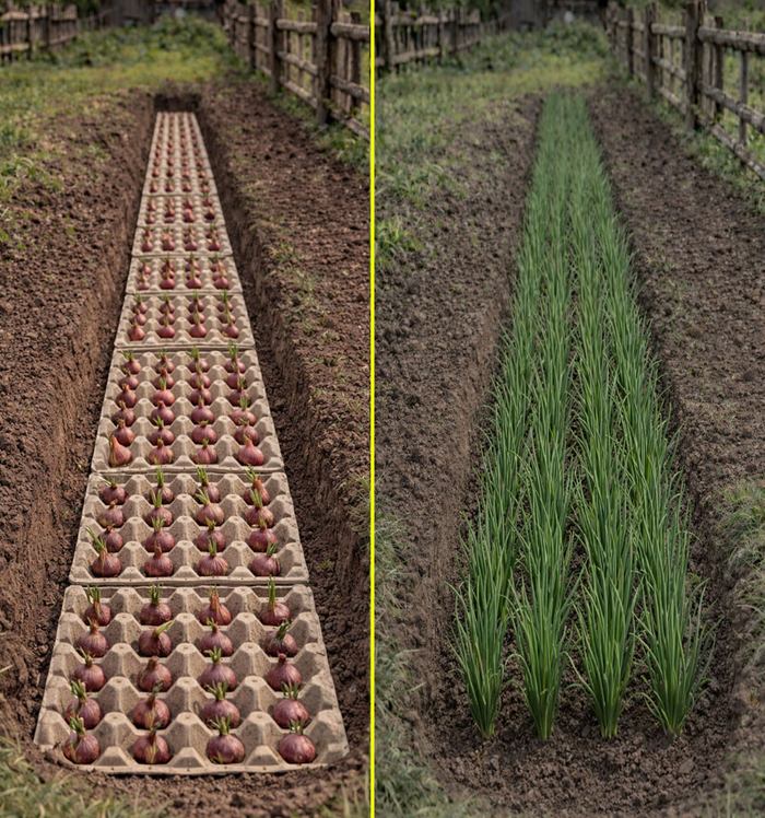 If you’ve ever struggled with uneven onion rows or overcrowded bulbs, this simple gardening trick can completely change the way you plant. Using egg cartons to space your onions ensures perfect alignment, better growth, and a cleaner garden bed—with almost no measuring required.